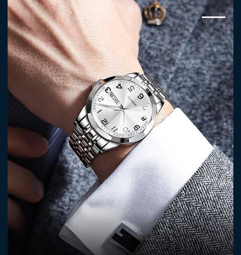 O Pulse Dual-Calendar Steel Quartz é um relógio masculino sofisticado e funcional, ideal para quem valoriza estilo e utilidade. Com caixa e pulseira de aço inox, ele combina durabilidade, brilho refinado e presença marcante no pulso.